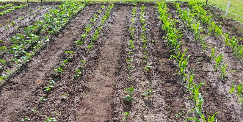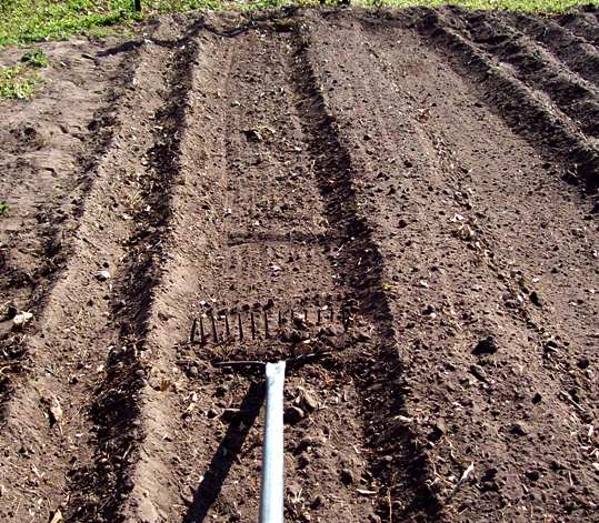 Divide your Garden into crop rows sets of two or three with easy to make walk paths.
